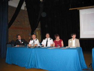 Some of the speakers at the Crime Busters conference. Left to right, Councillor Andrew Pattie (EHDC and conference chairman), Superintendent Pearce, Superintendent Bob Rose, Sandra Tuddenham (Community Safety Co-ordinator, East Hampshire Community Safety Partnership) and Linda Cawsey (Hampshire Police Authority Member).
