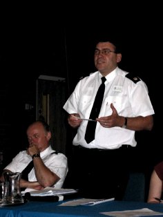 Superintendent Bob Rose (standing above), Divisional Commander for the central Hampshire area, gave the closing address to the audience of Councillors, East Hampshire District Council employees, Hampshire County Council staff, representatives from the Hampshire Police Authority and Constabulary and others, including youth and social workers.